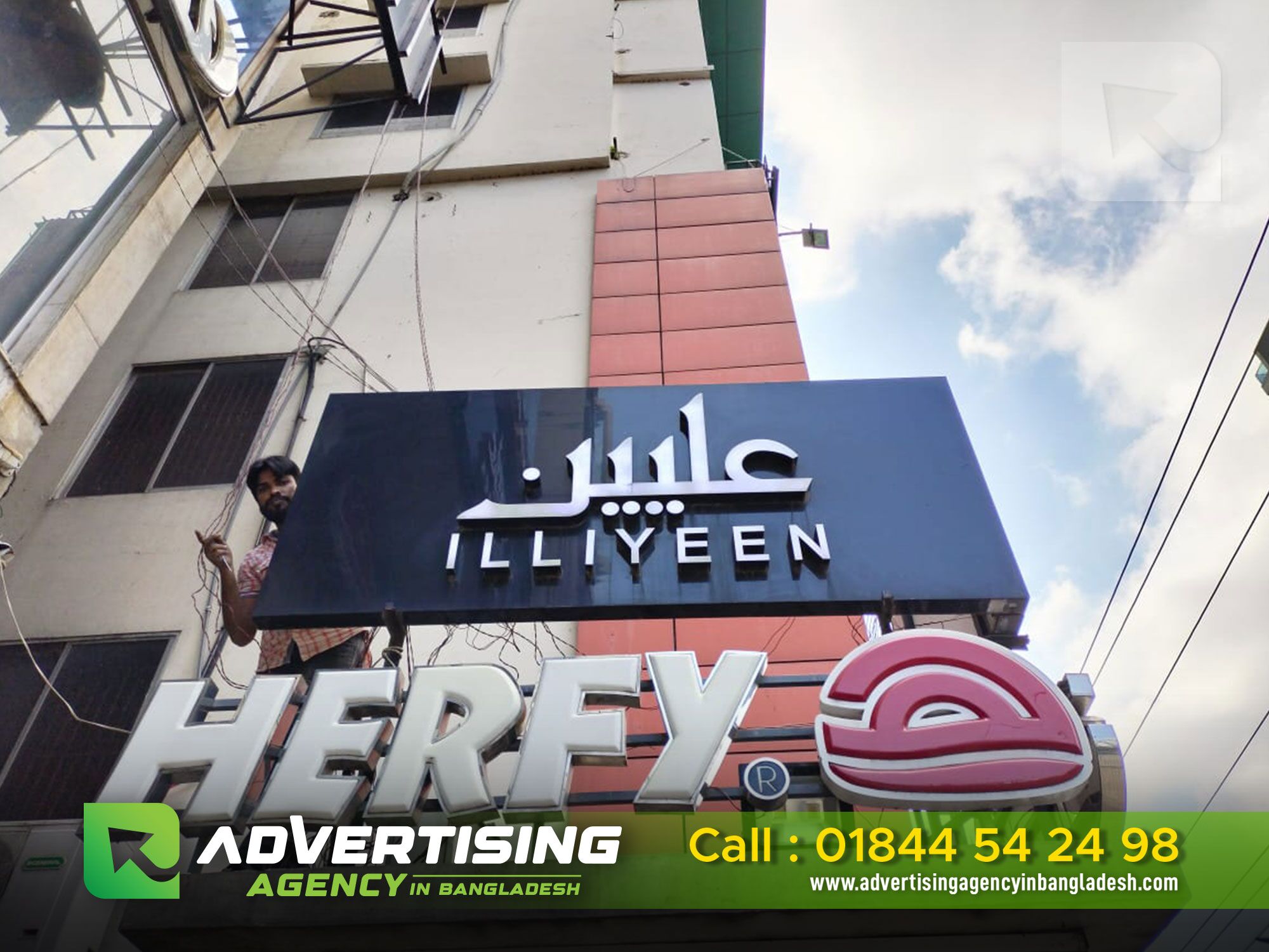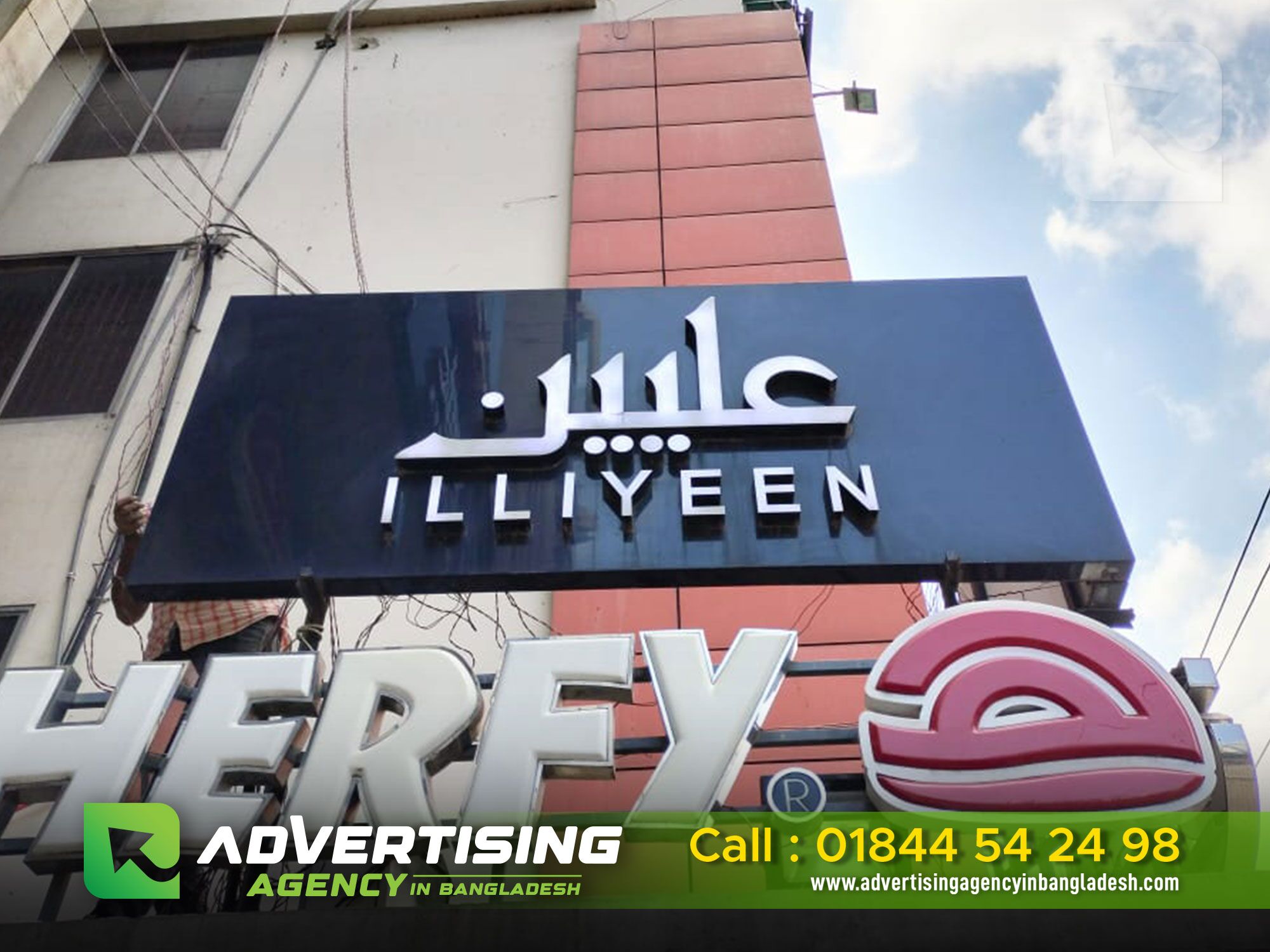 ACRYLIC 3D LETTER ILLIYEEN CLOTHING SIGN BOARD IN BANGLADESH